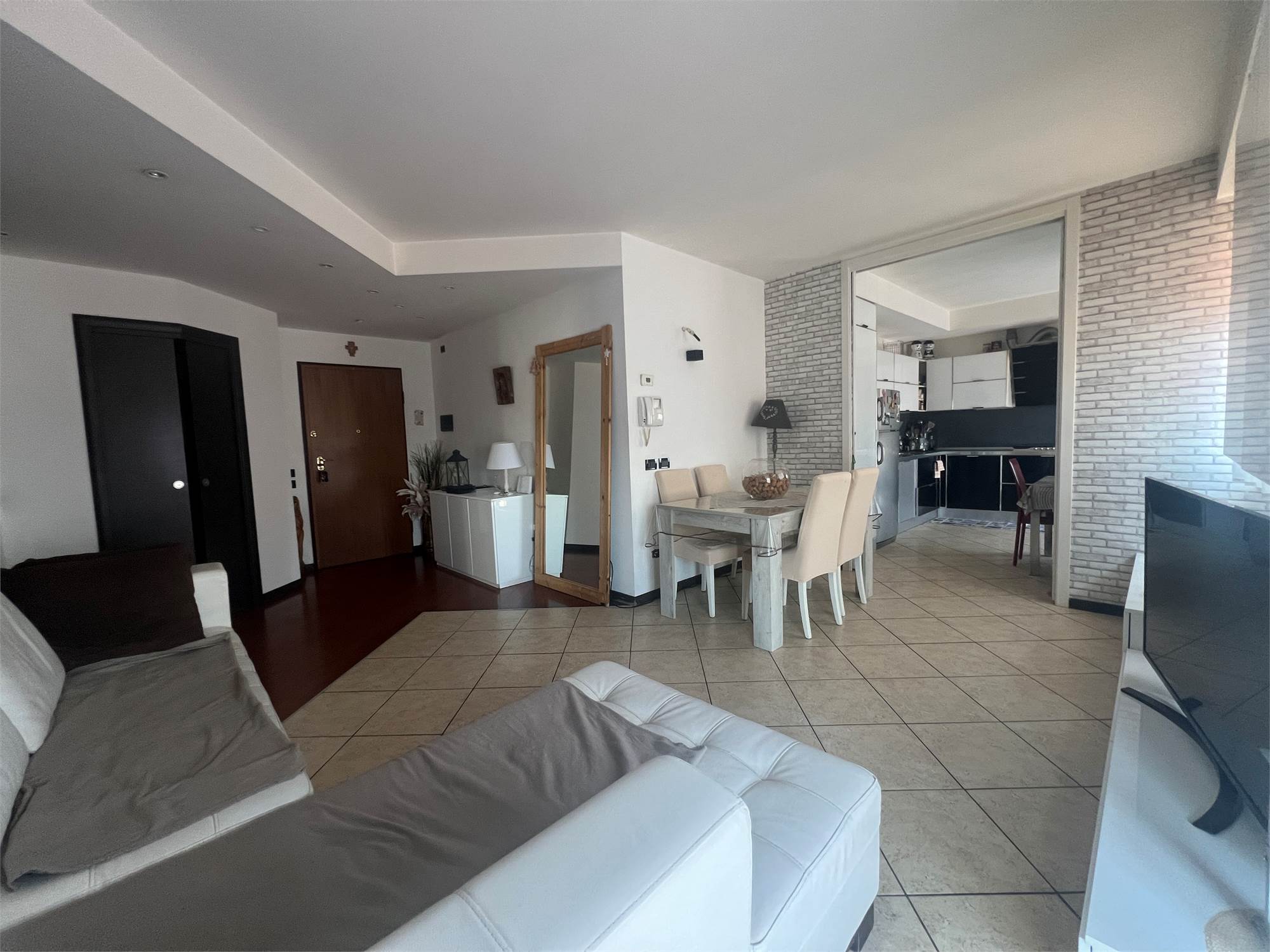 Al terzo piano con ascensore, appartamento quadrilocale con soggiorno e cucina a vista abitabile, disimpegno, bagno, tre camere, bagno/lavanderia e tre balconi.