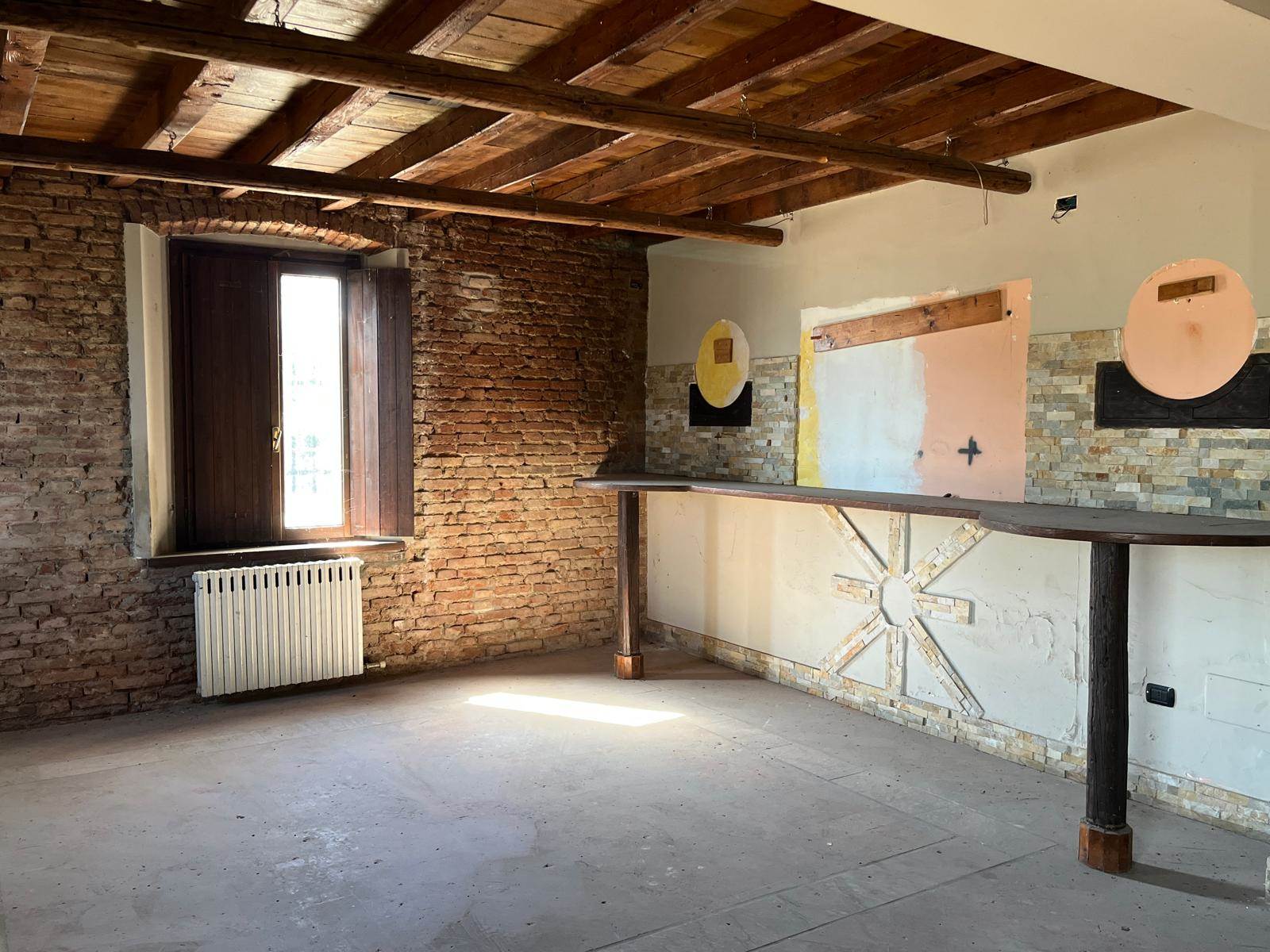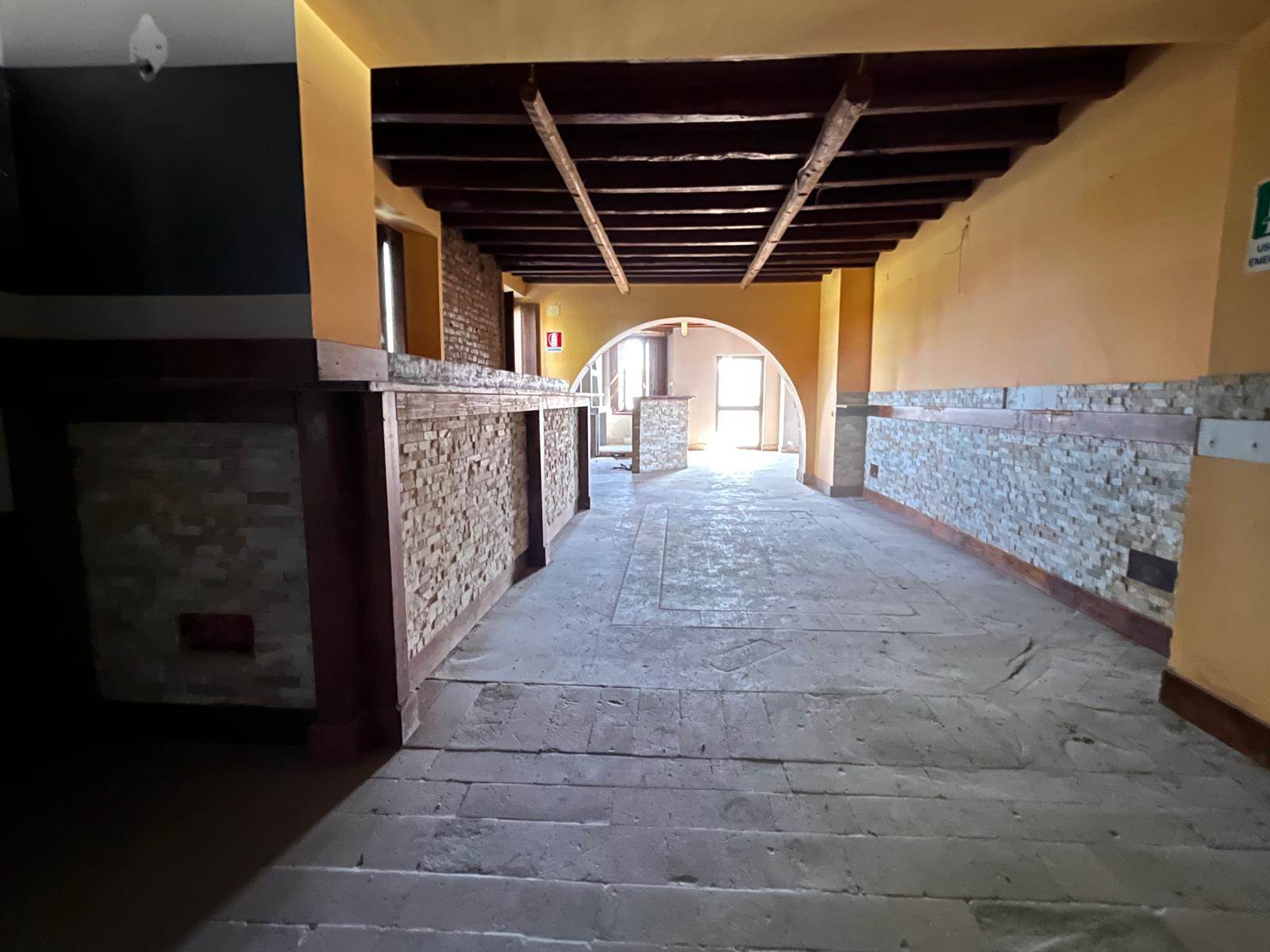 Direttamente sulla Strada Provinciale Bergamo - Cremona, locale commerciale ex Pub/Pizzeria al piano terra di 520 mq con area esterna di 1800 mq ad uso esclusivo.