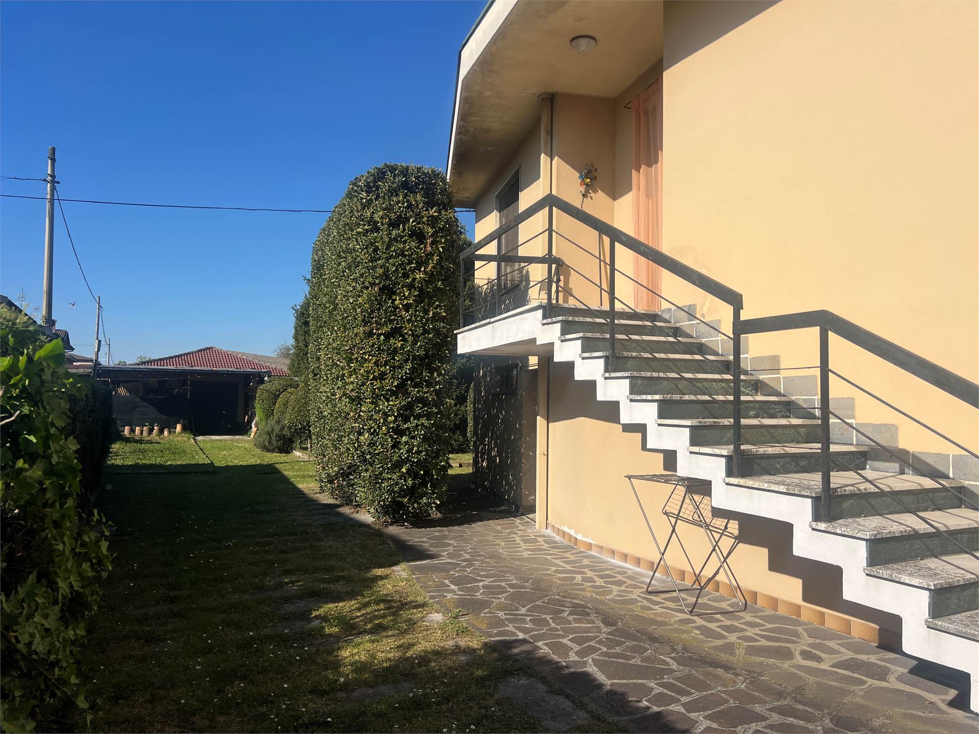 Villa singola con ampio giardino, disposta su due livelli: al livello primo ingresso con tinello, soggiorno e cucina, disimpegno, due camere e bagno per un totale di 120 mq, oltre a balcone di 15 mq.